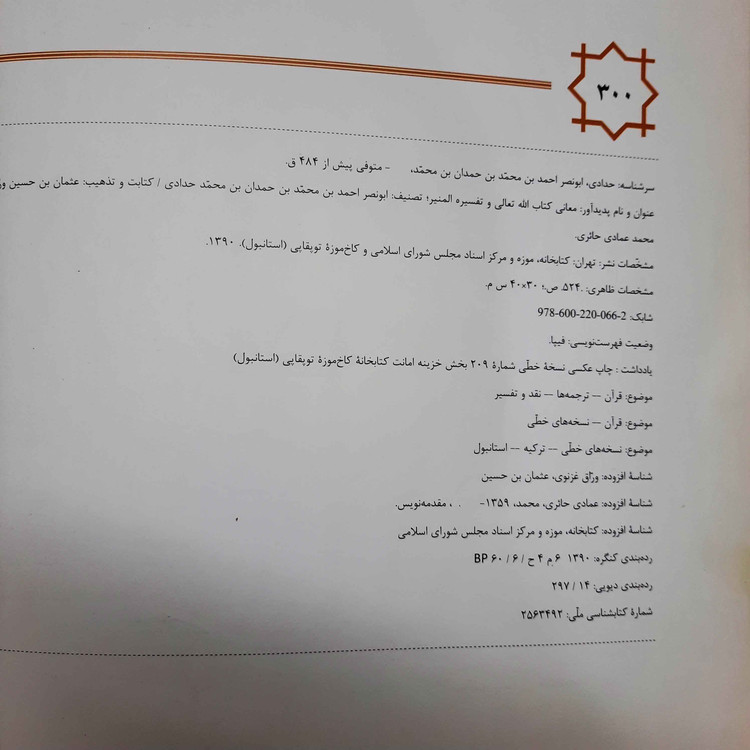 این قرآن نفیس که با مقدمه «سید محمد عمادی حائری» و «سرور مولایی»، منتشر شده، نخستین و کهن ترین نسخه تاریخی است که به زبان فارسی ترجمه و تفسیر شده و علاوه بر آن از نظر صفحه آرایی و کتابت و نسخهآرایی نیز اثری بسیار نفیس به شمار میرود.