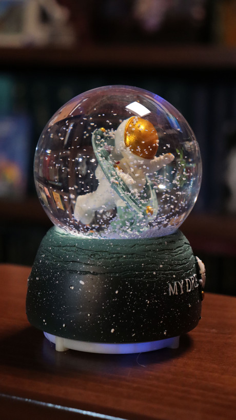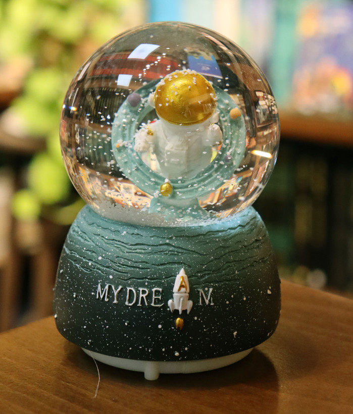 تو دل این گوی کریستالی، فضانورد شجاعمون درست وسط منظومهش وایساده، دورش سیارهها میچرخن و با یه تکون کوچولو، برفهای فضایی شروع میکنن به رقصیدن! ❄️🪐