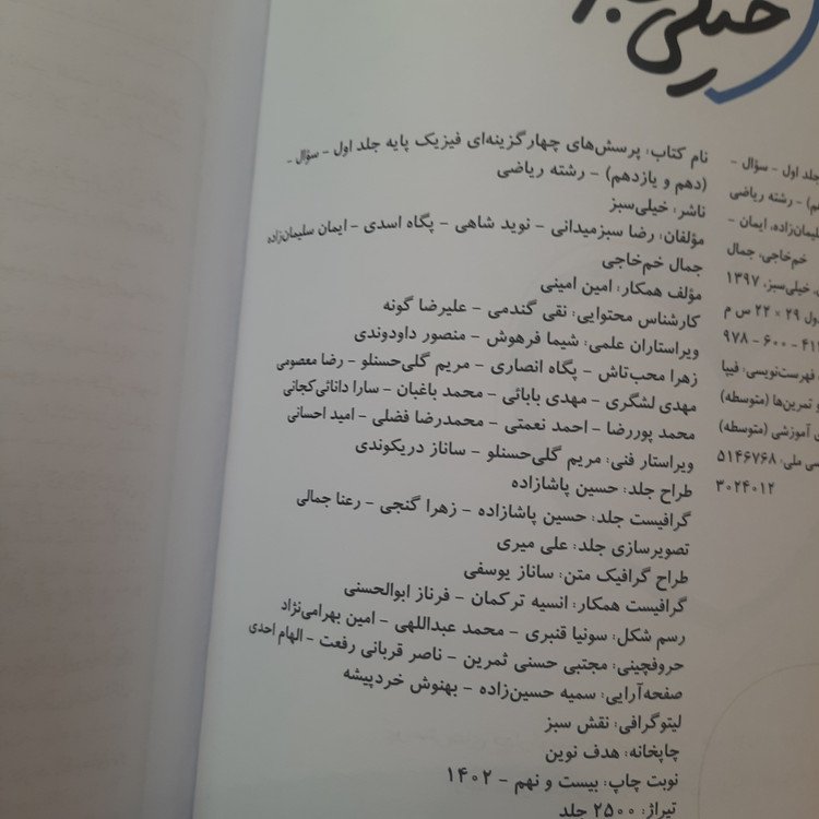 کتاب دست دوم فیزیک پایه جلد اول (سوال ) +جلد دوم (درسنامه.پاسخ) رشته (ریاضی) خیلی سبز کنکور 1402