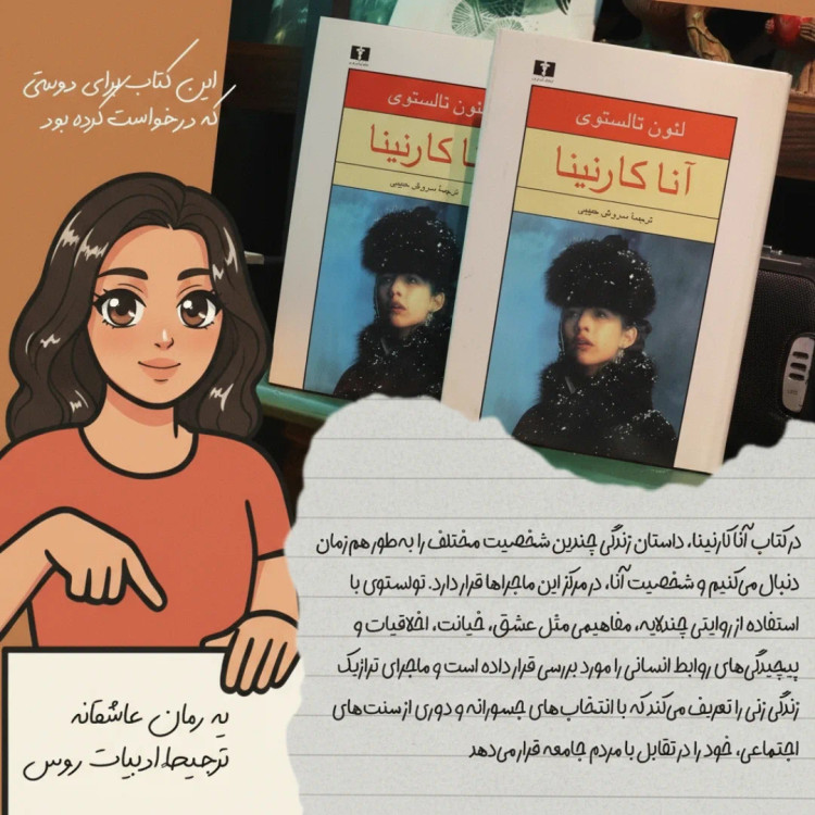 📚 آناکارنینا – شاهکار لئو تولستوی؛ داستانی عمیق درباره عشق، خیانت و جامعه روسیه قرن نوزدهم.