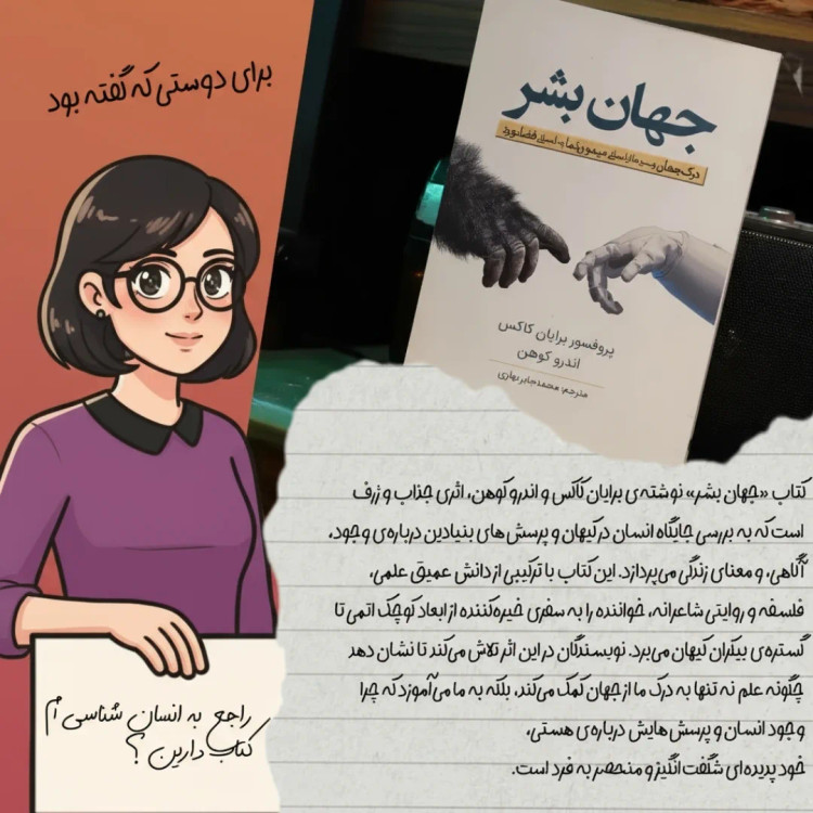 📚 جهان بشر (درک جهان و سیر ما از انسانی میموننما به انسانی فضانورد) – اثر برایان کاکس؛ نگاهی علمی و خواندنی به تاریخ و آیندهی بشر.