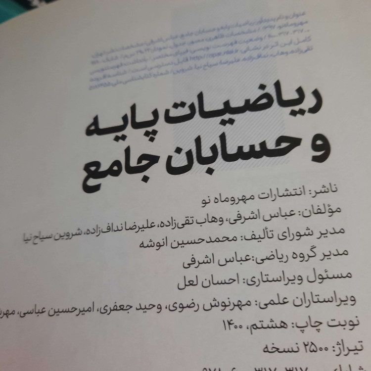 کتاب دست دوم ریاضیات پایه و حسابان دهم یازدهم دوازدهم چاپ 1400