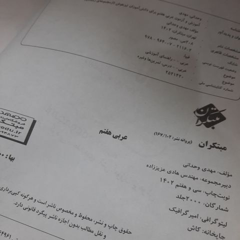 کتاب آموزش و آزمون عربی هفتم سری رشادت انتشارات مبتکران سال چاپ 1402