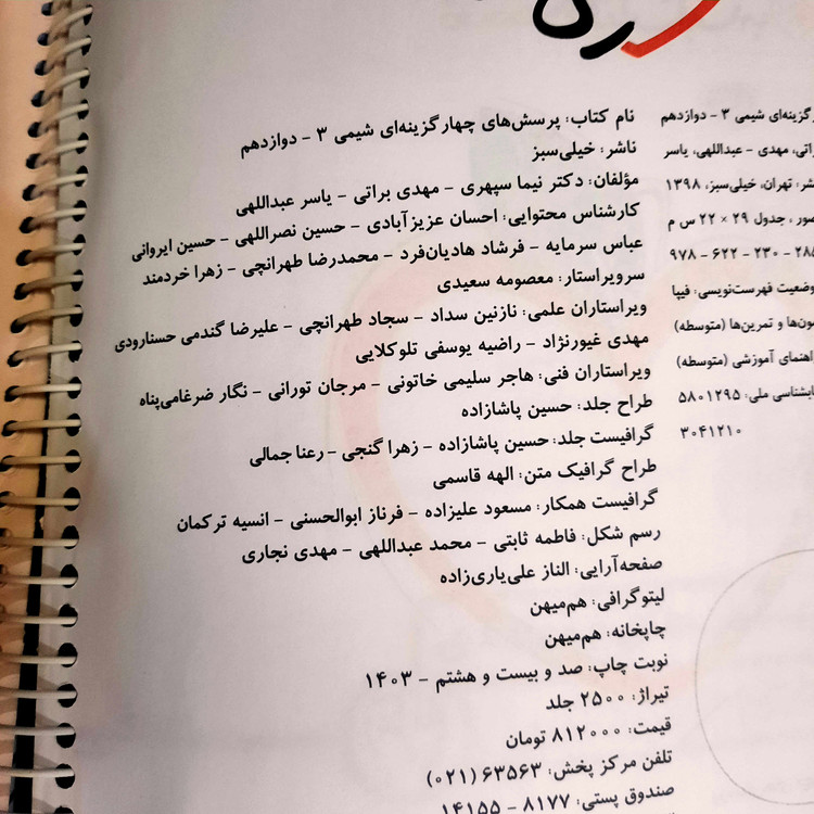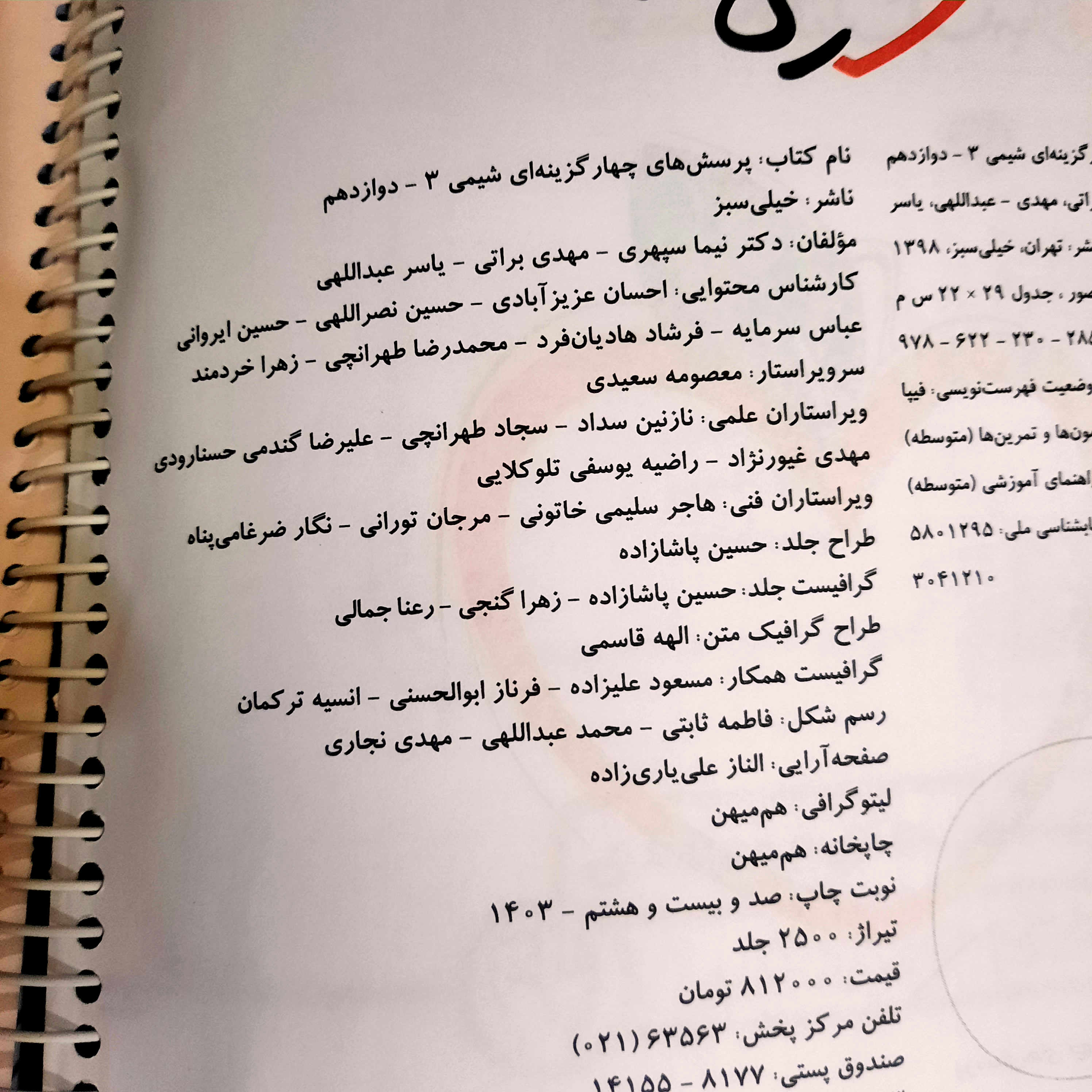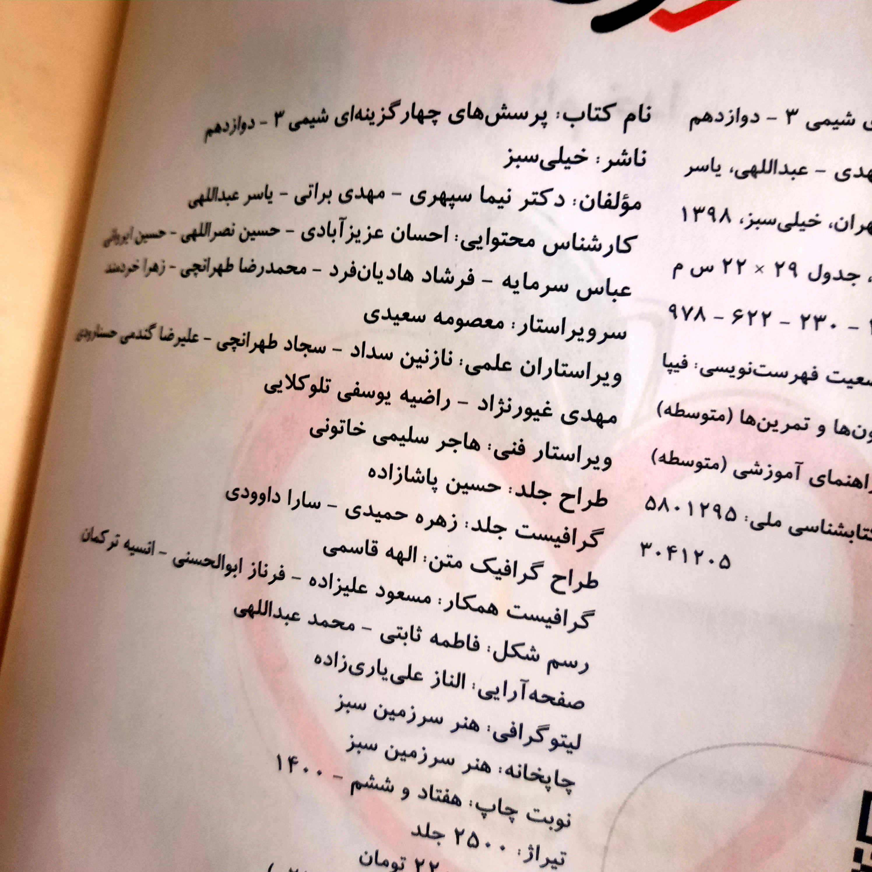 کتاب دست دوم پرسش های چهار گزینه ای شیمی 3 دوازدهم اثر جمعی از نویسندگان انتشارات خیلی سبز 1403