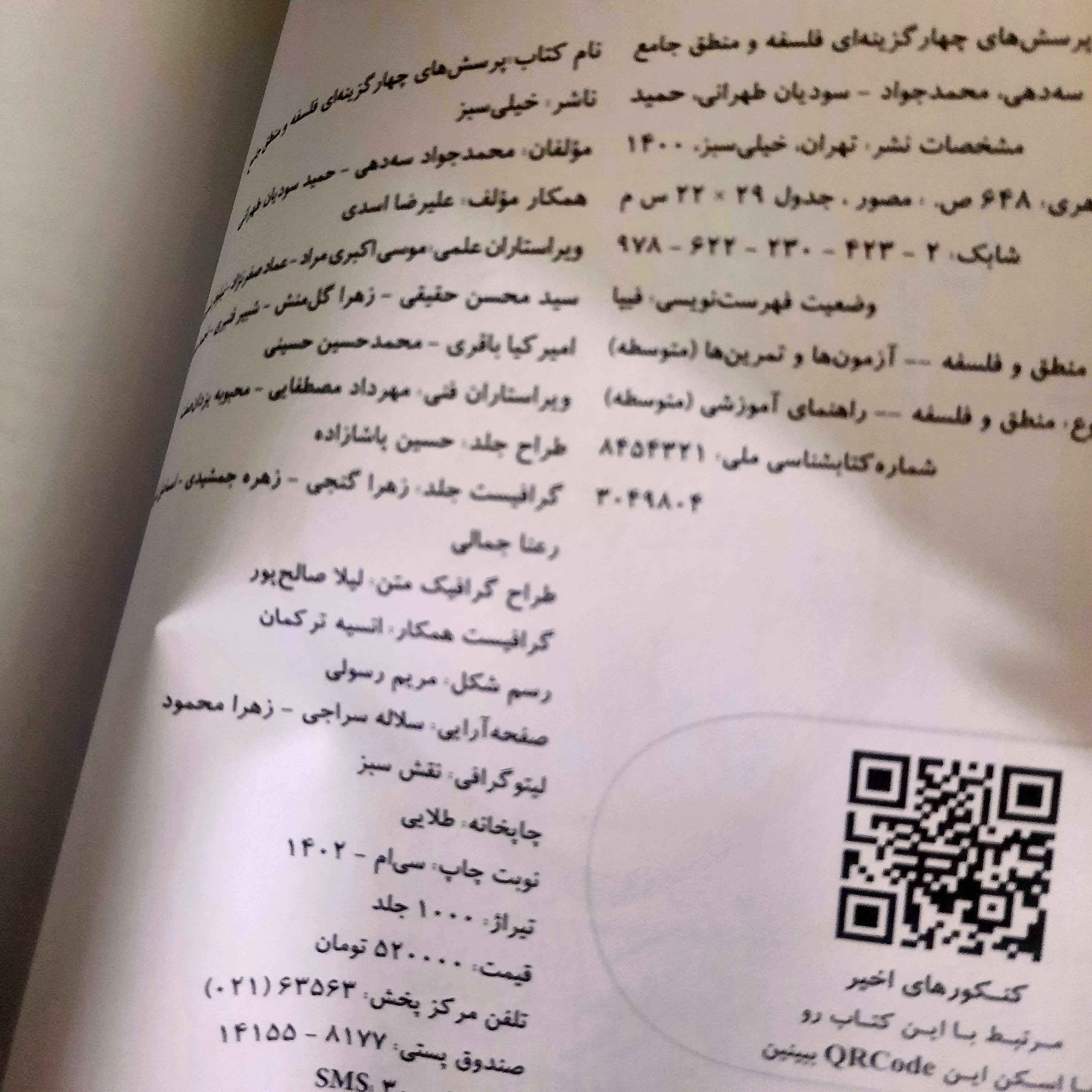 کتاب دست دوم پرسش های چهار گزینه ای فلسفه و منطق خیلی سبز 1402