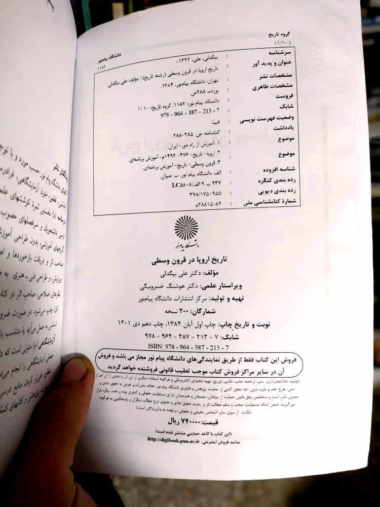 کتاب دست دوم تاریخ اروپا در قرون وسطی نویسنده: علی بیگدلی ناشر: پیام نور