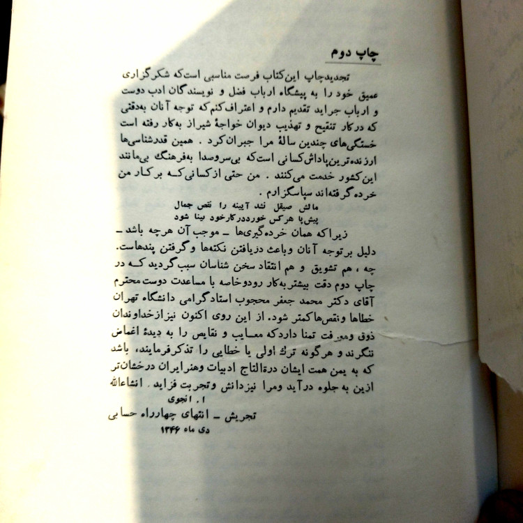 کتاب دست دوم دیوان حافظ با تصحیح ابوالقاسم انجوی شیرازی (چاپ ۱۳۴۶، قطع رحلی)
