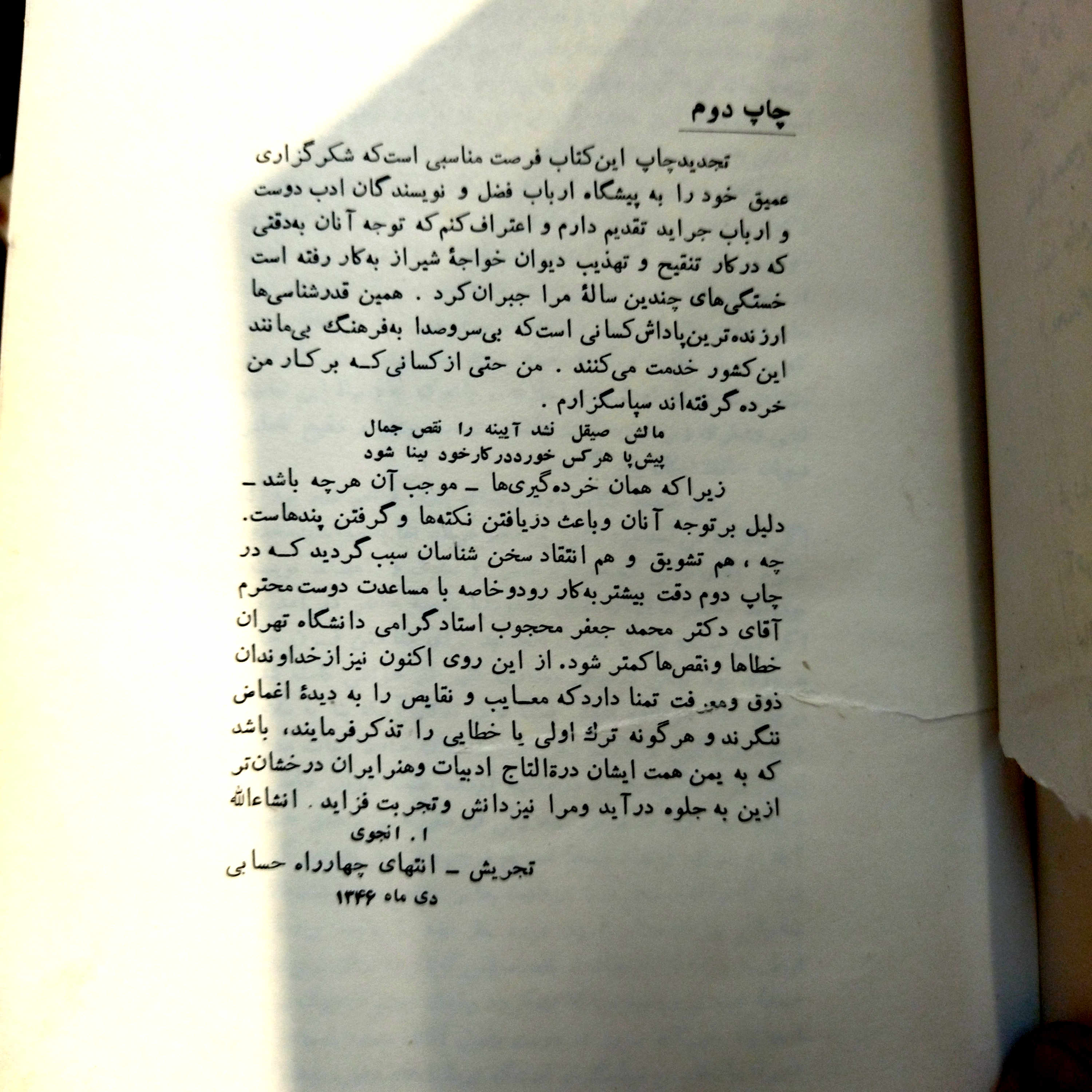 کتاب دست دوم دیوان حافظ با تصحیح ابوالقاسم انجوی شیرازی (چاپ ۱۳۴۶، قطع رحلی)