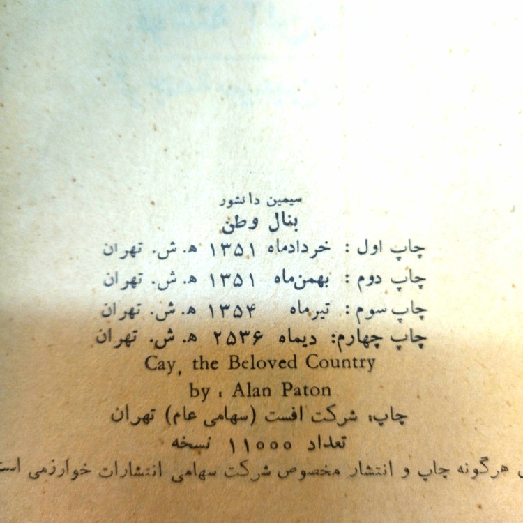 ترجمه این اثر توسط سیمین دانشور، نویسنده برجسته ایرانی، انجام شده و به همین دلیل نثر فارسی کتاب روان، دقیق و ادبی است. نشر خوارزمی نیز با انتشار این اثر، آن را در دسترس علاقهمندان ادبیات جهان قرار داده است. نسخه حاضر چاپ پنجم سال ۱۳۶۱ بوده و با وجود گذر زمان در وضعیت بسیار خوبی نگهداری شده و تنها دارای مهر است.