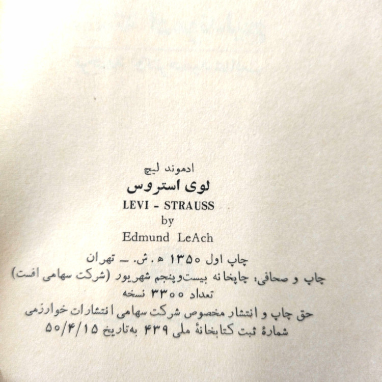 کتاب دست دوم لوی استروس | ادموند لیچ | ترجمه حمید عنایت | نشر خوارزمی | چاپ اول ۱۳۵۰ | کمیاب